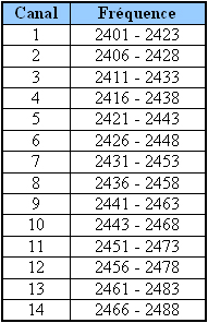 Canaux disponibles en Wi-Fi, et fréquences associées